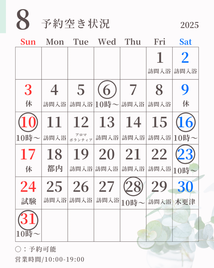 8月のサロン営業日のお知らせ