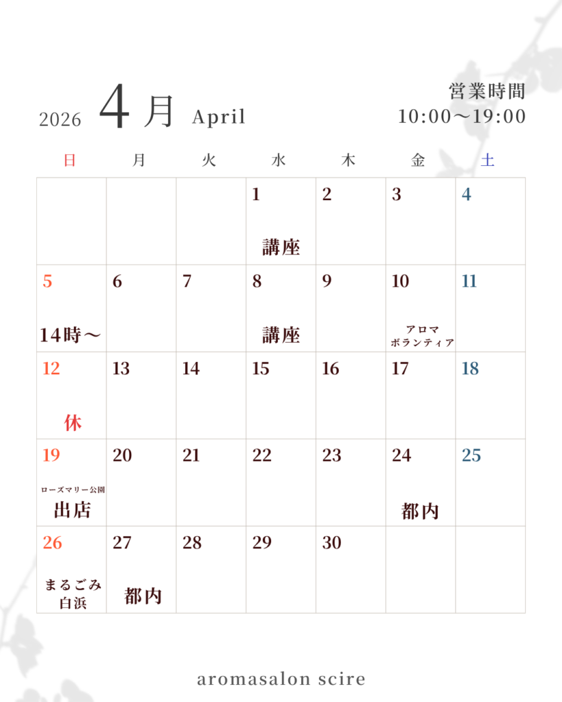 4月はトリートメントサロンと並行し教室としてアロマの教育の拠点となるべく、館山市~南房総市でのワークショップもどんどん行って参ります!